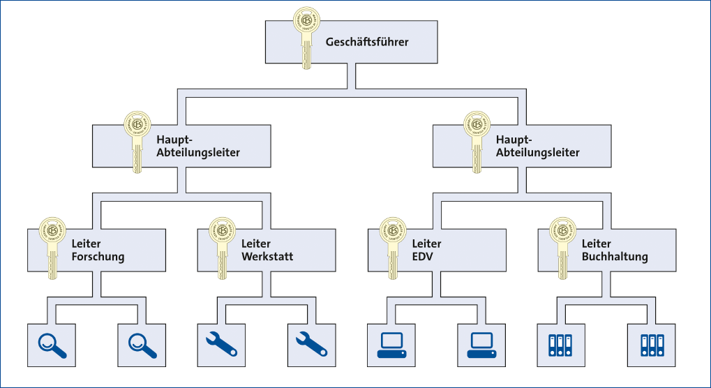 Diese Schließanlagenarten unterscheiden sich in der Struktur bzw. der Anzahl der Hierarchien.